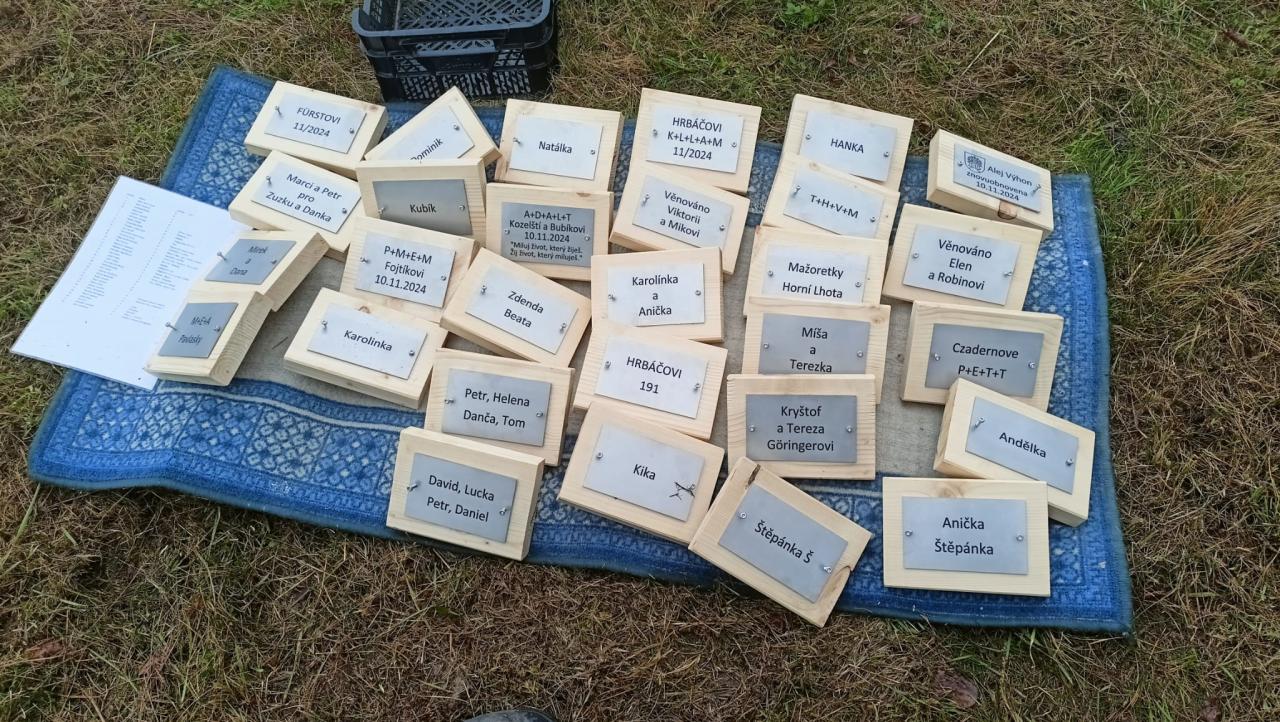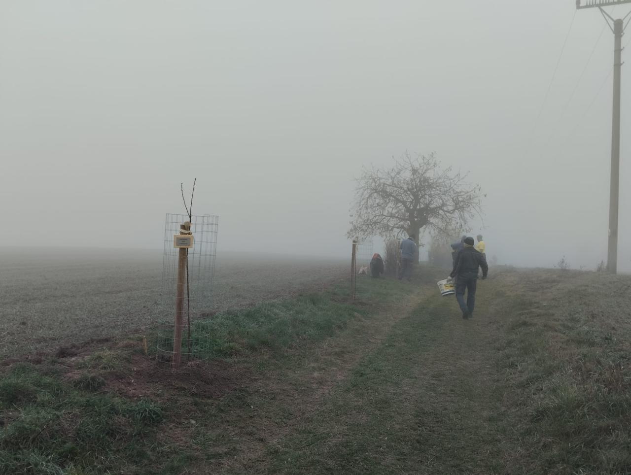 V neděli 10.11.2024 v dopoledních hodinách jsme v naší obci ve skupině asi padesáti sousedů obnovili alej na výhonové cestě. Navzdory sychravému počasí šlo vše díky hojné účasti rychle a zvesela.